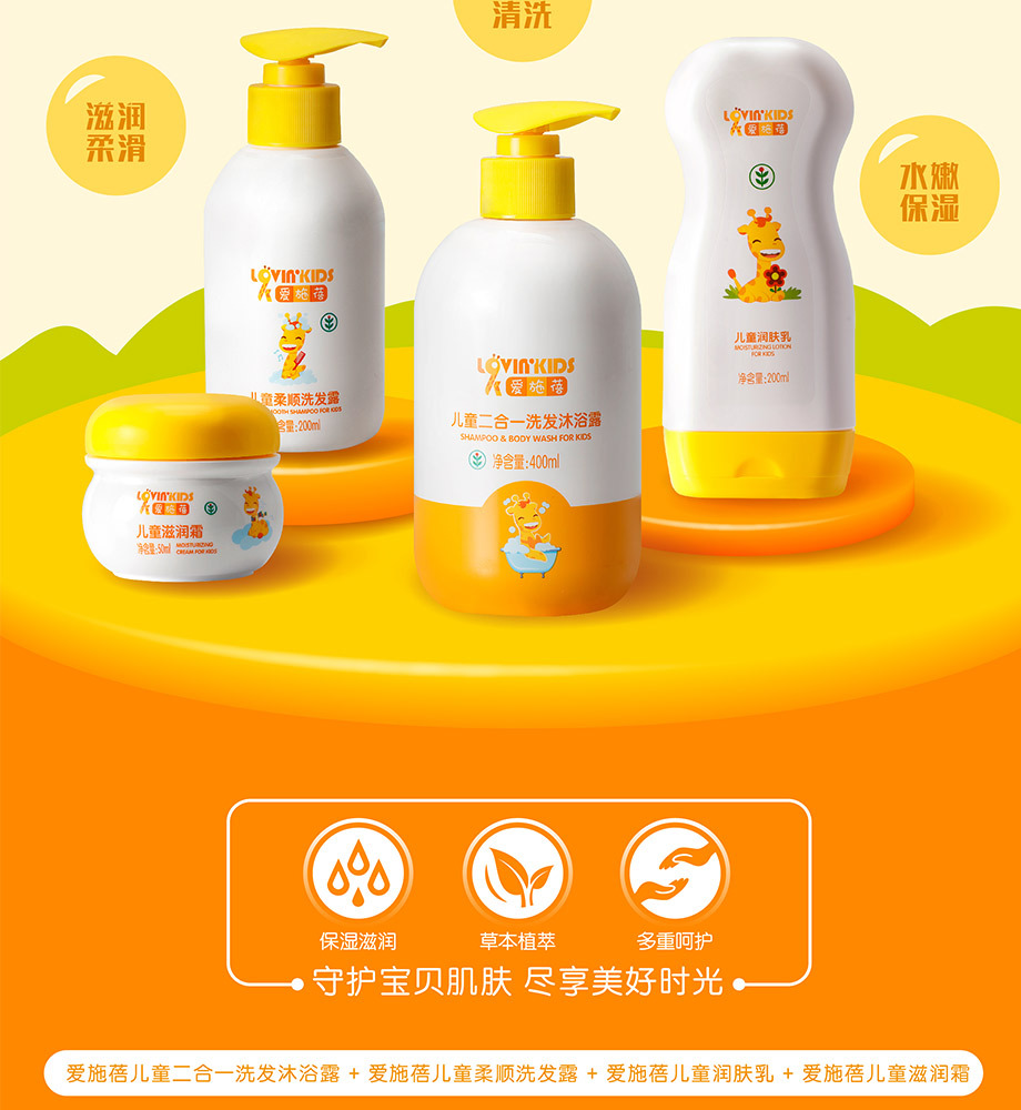 完美爱施蓓儿童洗发沐浴露 二合一保湿宝宝洗发水沐浴露专柜正品