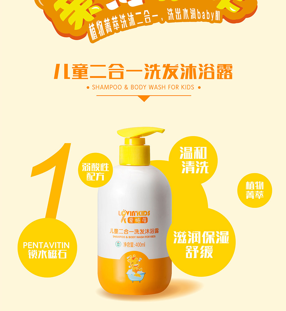 完美爱施蓓儿童洗发沐浴露 二合一保湿宝宝洗发水沐浴露专柜正品